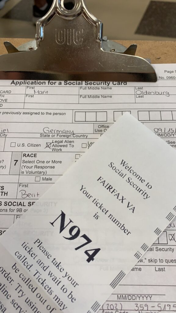 Heute hat Jose mich nach Reston zur Social Security Administration gefahren, damit ich meine Social Security Nummer beantragen kann. Das ging auch problemlos, ich musst sogar nur 1,5 Stunden warten. Anschließend bin ich ca. 20 Minuten zu einem kleinen Einkaufszentrum gegangen und habe mir erst einmal was zu essen geholt und mich anschließend mit meinem Buch an den anliegenden See gesetzt und gewartet, bis ich wieder abgeholt werden konnte.