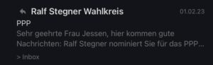 Am Mittwoch, dem 01.02.2023 dachte ich kurz an unser Gespräch zurück und aktualisierte gedankenverloren meine E-Mails als plötzlich in dem Moment eine neue Nachricht auftauchte. Ich kannte die ersten Worte bereits aus Erzählungen anderer Stipendiat*innen.