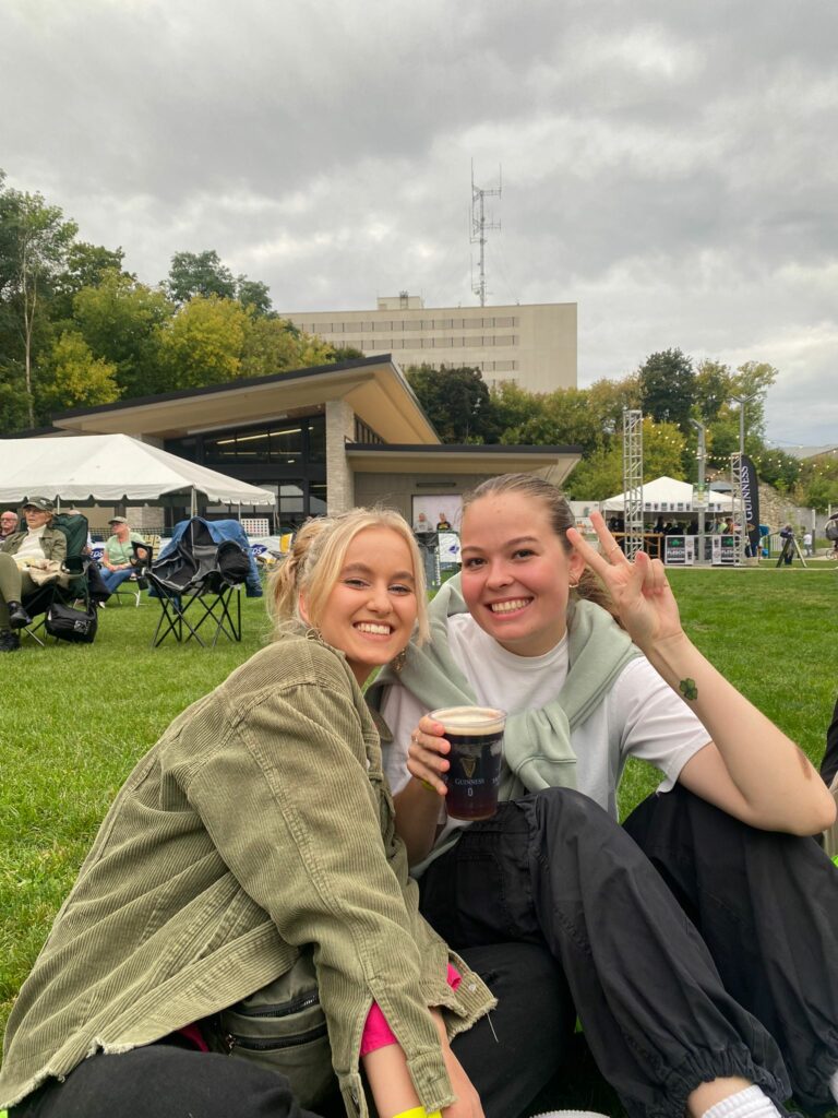 Dann fand noch ein Irish Fest statt. An den Einlasskontrollen leisteten einige von uns Student*innen ihre Freiwilligenarbeit. Ich war mit 3 russischen Student*innen und einem Amerikaner unterwegs. Es gab kostenlose Essensstände mit Käse und Kerrygold Butter, die mich direkt an unseren Frühstückstisch zu Hause in Deutschland erinnerte. Wisconsin, auch der Käsestaat genannt, ist bekannt als der größte Käsehersteller und jegliche Arten von Milchprodukten werden hier produziert und verkauft. Meine Haut dankt es mir zwar nicht, aber die ganzen verschiedenen Käsesorten sind einfach nur himmlisch! Am späten Abend wurde die Bühne dann von 3 irischen Musikern eingenommen. Wir tanzten und sangen zu deren Liedern, es war ein schöner Abend. Und dann erhielt ich noch eine besondere Nachricht: Mein social host hat sich endlich bei mir gemeldet! Jeder im Dorm erhält einen social host, eine Art Ersatz zur Gastfamilie. Sie zeigen uns die Umgebung und generell das Leben hier in Wisconsin. Auch ich möchte meinem social host die deutsche Kultur näherbringen. Wir werden uns nächste Woche das erste Mal treffen und ich freue mich sehr auf die Zeit.