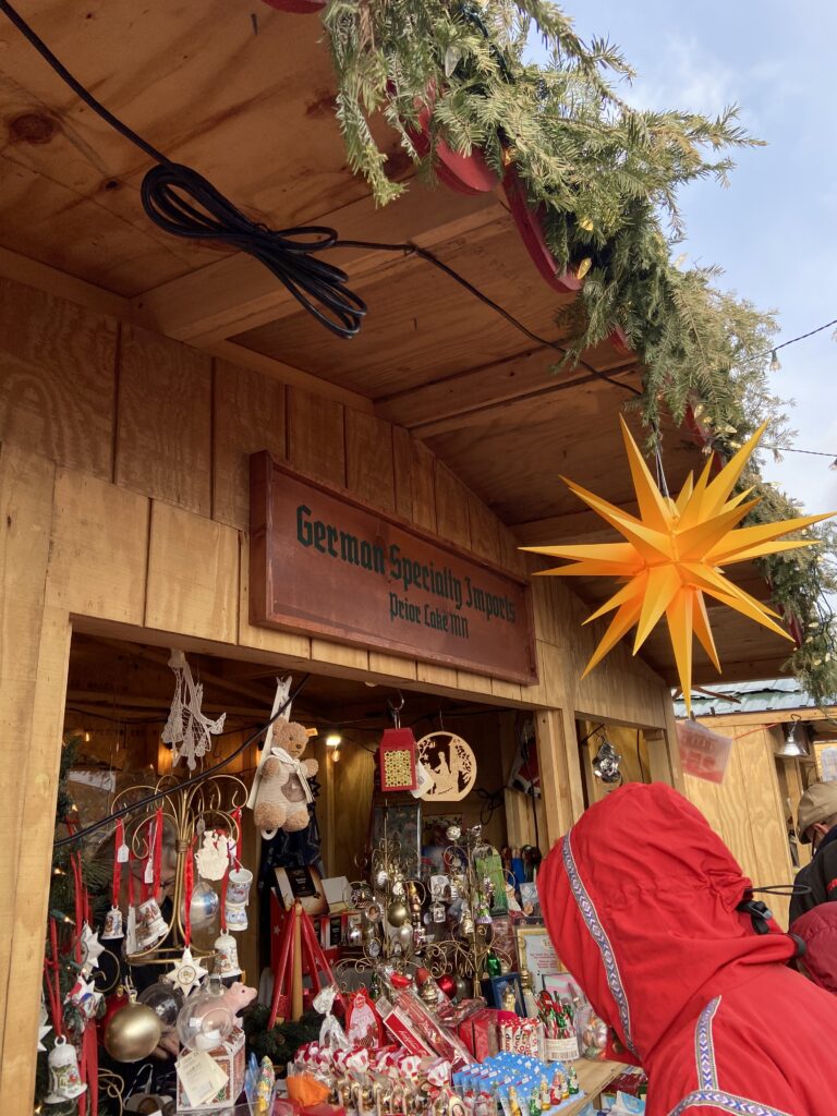 Doch abgesehen von ein paar Highlights waren die ersten 2 Wochen im Dezember nicht leicht für mich. Meine liebste Zeit des Jahres ist (die Sommerzeit ausgenommen) der Dezember. Hier in der Gegend gab es jedoch weder Weihnachtsmärkte noch irgendwelche Weihnachtsevents, die nicht nur für Kinder bestimmt waren. Hinzu kam, dass die meisten meiner Freunde hier mit ihren Final exams beschäftigt waren. Denn während ich nur 2 Kurse pro Semester belege, sind es bei denen bis zu 6 Kursen. Zusätzlich telefonierte ich viel mit Freunden von zu Hause, welche nach langer Zeit mal wieder einiges an Schnee erlebten. Weihnachtsmärkte, Glühweinabend auf dem ehemaligen Gymnasium und einige Zusammentreffen meiner Freunde ließen mich zu Hause plötzlich sehr vermissen. Und was hilft bei so einer Notlage? Richtig. Reisen und Ablenkung. Also buchte ich mir ein Zugticket nach Minnesota, Minneapolis, welches mich am folgenden Wochenende innerhalb von 6 Stunden in den anliegenden Bundesstaat brachte. Ich traf mich mit einer weiteren PPPlerin und wir hatten ein Ziel: In Weihnachtsstimmung zu kommen! Also besuchten wir einen europäischen Weihnachtsmarkt, eine Christmas-Bar, gingen Schlittschuhlaufen (meine Schlittschuh-Künste sind wirklich bedauerlich. So bedauerlich, dass ich mich mit einer 6-jährigen Newcomerin anfreundete) und besuchten ein amerikanisch-schwedisches Museum, welches mir für 8$ wortwörtlich 5 Salatblätter auftischte. Mit Goldspray besprüht, versteht sich. Da ich die letzten Wochen sehr viel gereist, somit wenig gearbeitet und dementsprechend nicht wirklich Geld hatte, buchten wir uns eine Couch-surfing Unterkunft. Zunächst war ich sehr skeptisch, aber als uns die Frau in ihr Haus lud, um dort auf ihrer Couch zu schlafen, hatte sie gerade eine Freundin zu Besuch. Wir machten zusammen Popcorn selbst, schauten Weihnachtsfilme und tauschten uns aus – es war definitiv eine schöne, bereichernde Erfahrung!