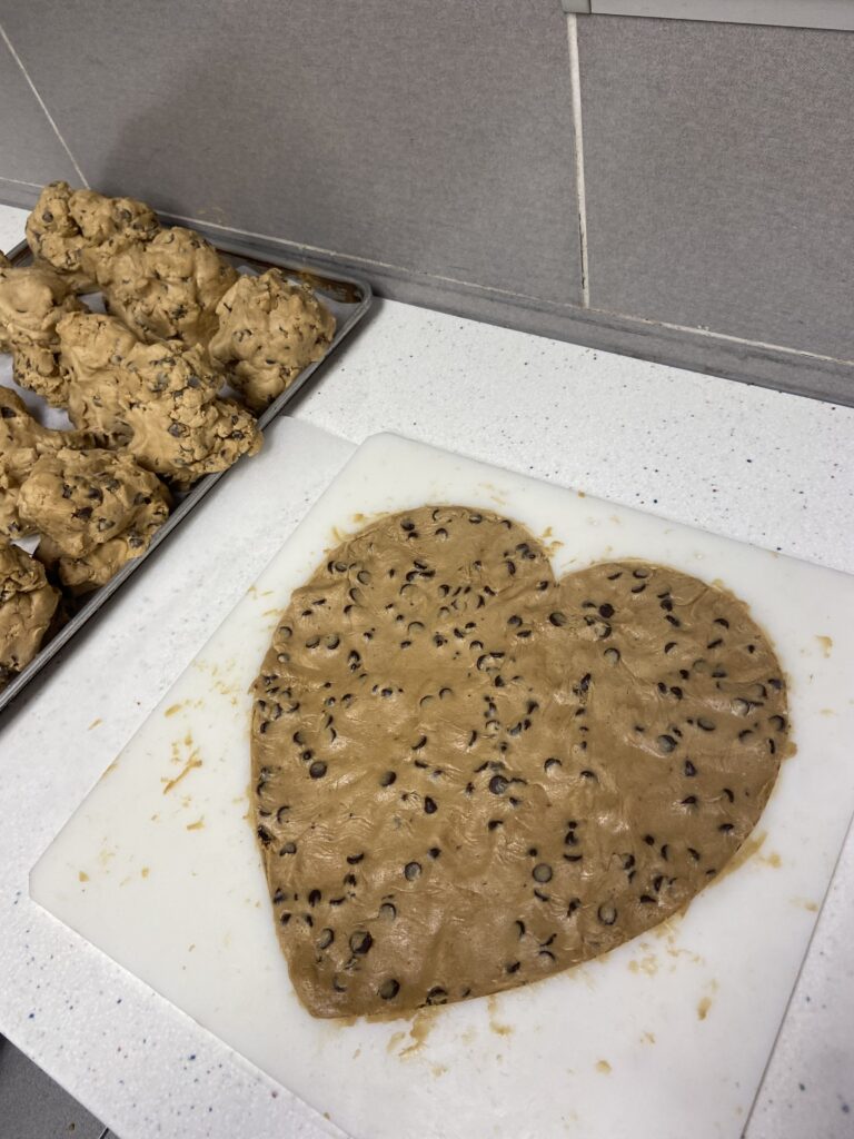 Ich habe die Cookies anlässlich der Valentine‘s-Week dekorieren dürfen. Dazu war ich in den letzten Wochen viel mit cake rolling beschäftigt. Das heißt, der Cookie-Teig wird in Herz-Formen ausgerollt und anschließend für bevorstehende Bestellungen kaltgestellt. Wir stellten in der Mitte des Geschäfts die großen Cookies auf und bekamen von unserem Chef alle kostenlos einen Coffee unserer Wahl, welcher uns definitiv in den stressigen Zeiten zugutekam. Auch für das leibliche Wohl wurde gesorgt, als unser Chef uns seinen Go-to College Snack aus seiner Studentenzeit zubereitete. Tacos mit Tomatensauce und Mozzarella, gebacken im Ofen. Simple, aber erstaunlicherweise echt gut!