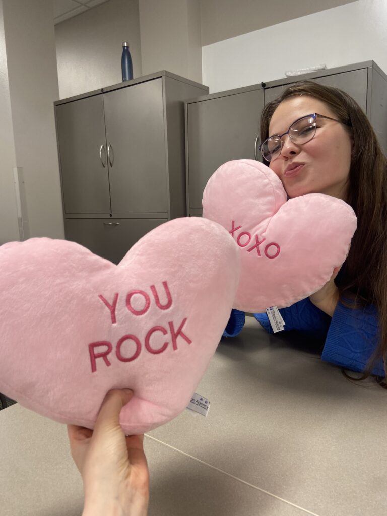 Und dann war da noch der Valentinstag. Im College konnten wir Plüsch-Herzen basteln. Am Abend traf ich mich mit 3 weiteren internationals für eine kleine Pyjama-Party und wir schauten den wahrscheinlich kitschigsten Film, den es gibt. Während in Deutschland meines Erachtens, diesem Tag nicht wirklich große Aufmerksamkeit geschenkt wird, schaut dies in den USA mal wieder anders aus. Die Supermärkte sind übersäht von Valentinstag-Specials, Kleidungsläden haben Valentinstag-Merch und noch ein Laden profitierte sehr: der Cookie-Store!